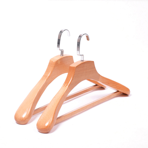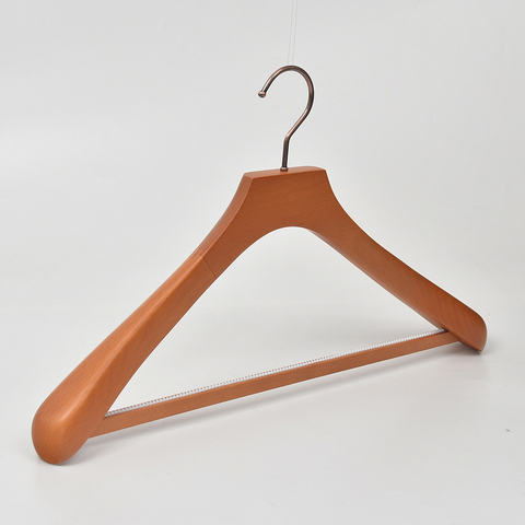 ไม้แขวนเสื้อในการแสดงสีน้ำตาลสำหรับโรงแรมที่แขวนเสื้อสูททำจากไม้หรูหราใช้แขวนเสื้อโค้ทสำหรับเสื้อคลุม