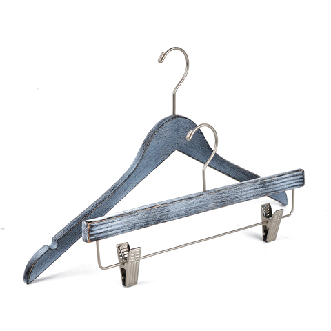 ชุดไม้แขวนเสื้อสูททำจากไม้เสื้อยืดสีฟ้าสำหรับด้านบนและด้านล่าง
