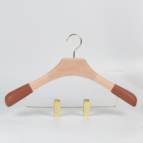 ที่แขวนเสื้อทำจากไม้สำหรับโรงแรมทำจากหนัง PU มีคลิปหนีบผ้า