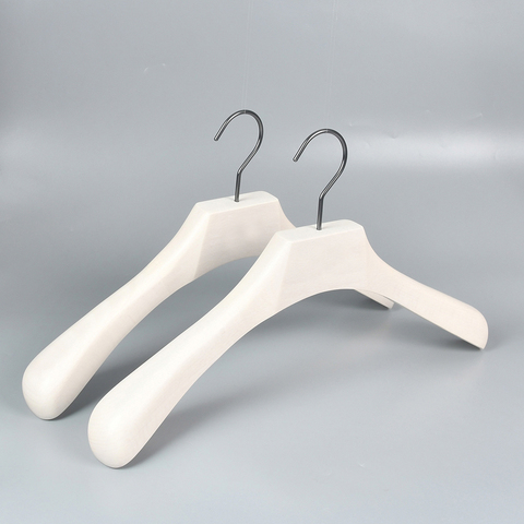 ไม้แขวนเสื้อโค้ทสำหรับแจ็คเก็ตสีขาวไหล่กว้างที่แขวนเสื้อโค้ทแบบปรับแต่งได้